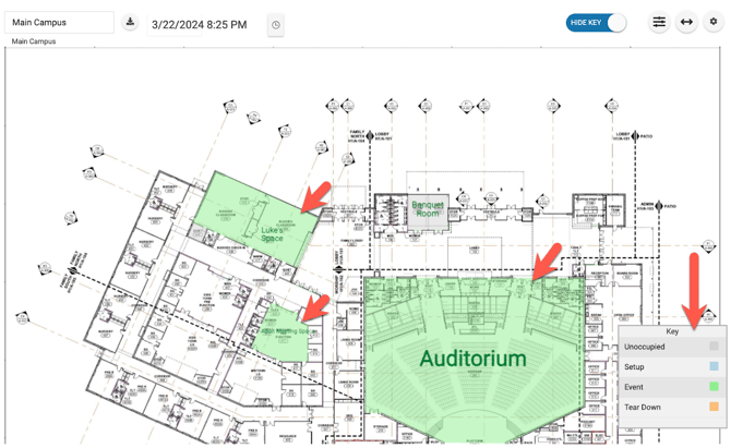 - Users can click and drag the Key to any spot on the Floor Plan or toggle "Hide Key".