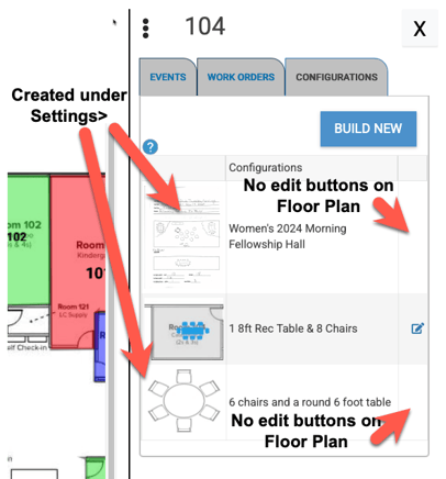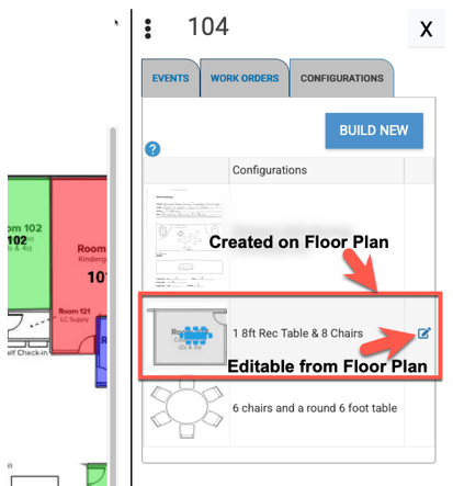 - Any configurations added here and assigned to spaces will be viewable on Floor Plan when you click on that space and switch to the Configurations tab. These configurations will not be editable on Floor Plan, but can be edited under Settings > Advanced > Configurations by an admin.