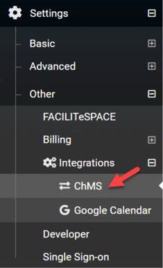 - If you are already an eSPACE subscriber (if not, please contact sales@smartchurcholutions.com) and have Event Scheduler on your subscription, then go to Settings > Other > ChMS
