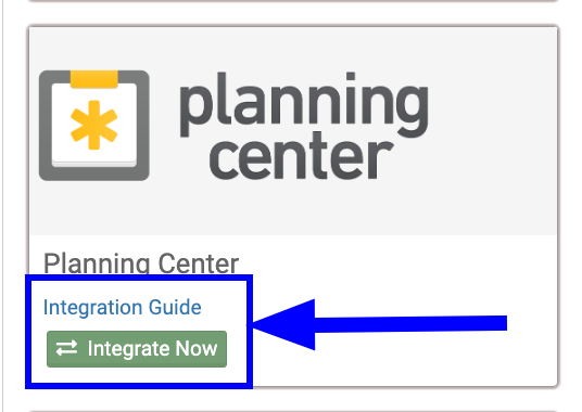 - After you read the guide, then click “Integrate Now” under your specific ChMS