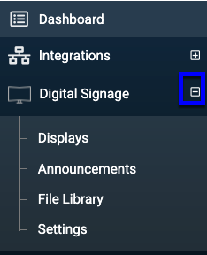 - If you have the Digital Signage integration, then expand Digital Signage to get started.