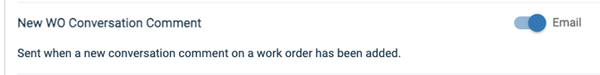Once the portal user submits a comment in a conversation, then the admins, sub-admins, and regular users (depending on user permissions and fields chosen on the work order) will get an email notification about it as long as they have the "New WO Conversation Comment" email notification enabled under their profile icon/My Notifications/Notification Preferences.