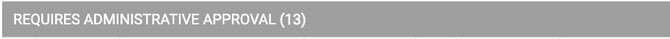 - In the example below each item that is assigned to an approval area has not yet been approved by the sub-admin(s).