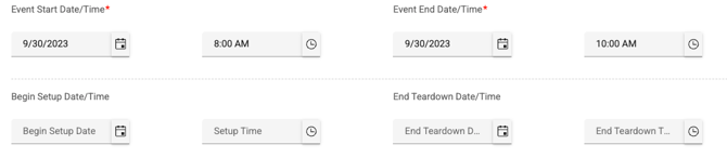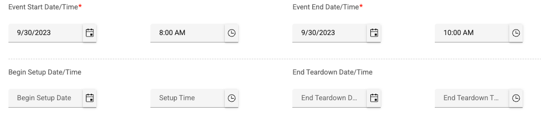 However, if the event does not have a setup and end teardown time, then eSPACE will use the start time/end time of the event plus ramp time in FACILITeSPACE.