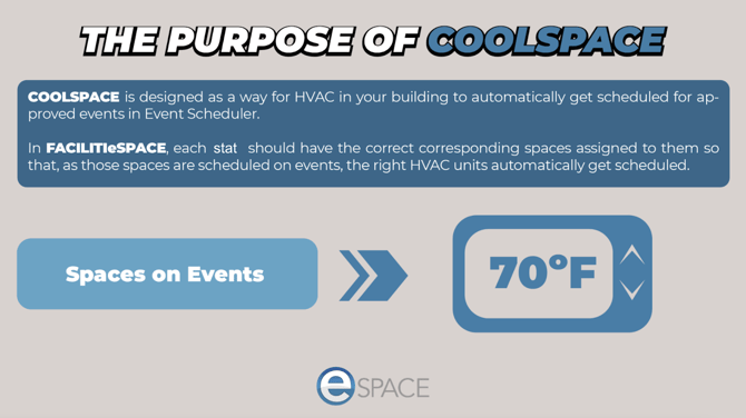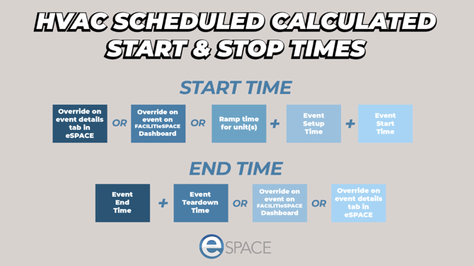 - Integrating your HVAC with eSPACE, you can set the units/thermostats to be scheduled to turn on by setting ramp times for all the units/thermostats in FACILITeSPACE.