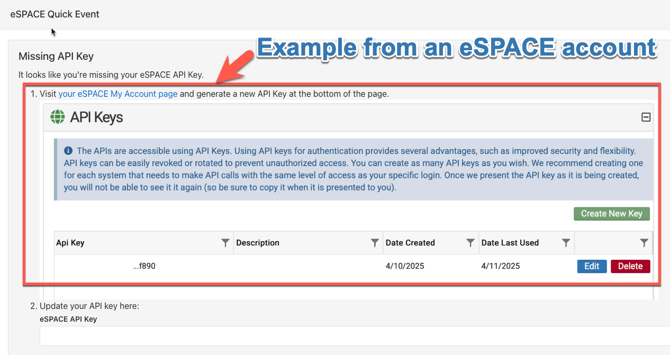 - D. You will then be prompted to enter in an API key from your eSPACE account.