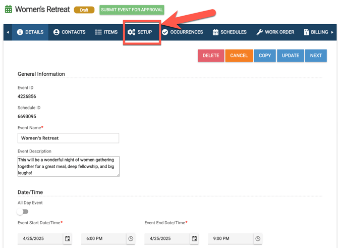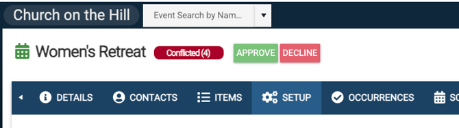 - Admins in eSPACE will be able to approve the event as well as change any details on the event.