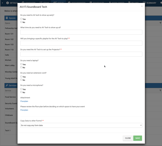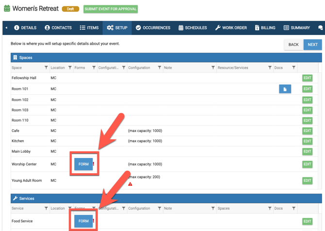 - F. In order to see the selection of locations, categories, spaces, resources, and services that can be selected on an event in Rock, you must first have those added to your eSPACE account.
