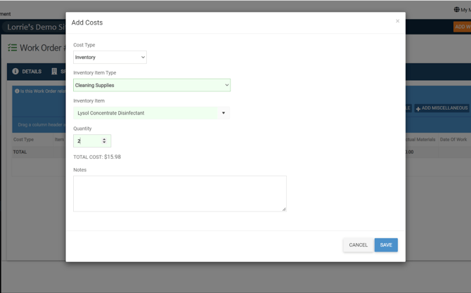 Inventory | Adding Inventory Costs within a Work Order