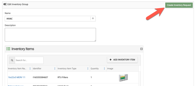 5. Additionally, you can also create an Inventory Request right from your Inventory Group