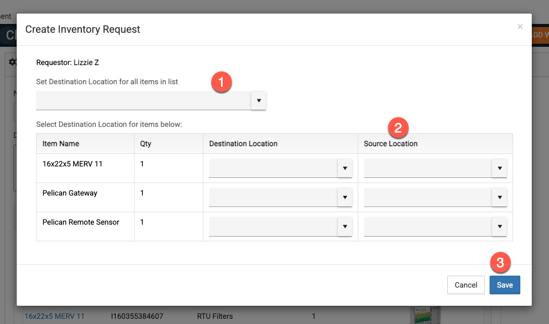 7. Once you click Save, the normal Inventory Request process can be followed.