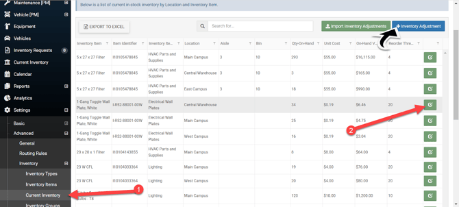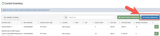 - 2. The second option is to click "Inventory Adjustment" at the top right of the inventory page.