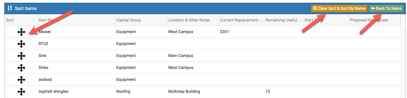 Select the blue "Sort Items" button
