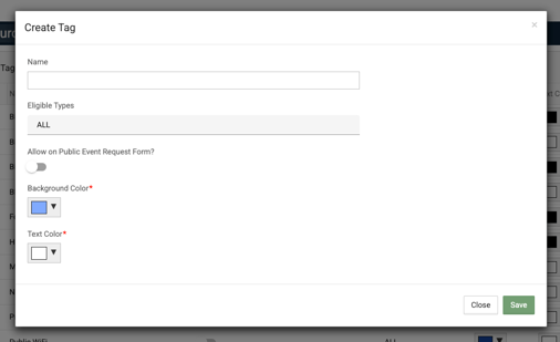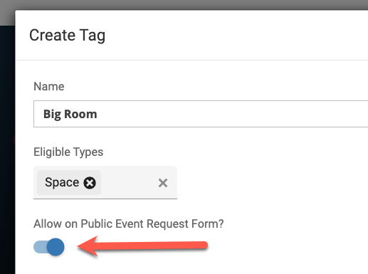 Again, when you are creating tags, if the below setting option is checked, then that tag will be available on your Public Event Request Forms.