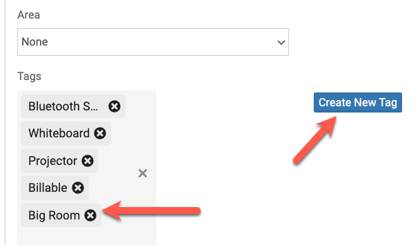 - For example, you may want to include an item tag such as "Big Room", "Has Whiteboard", "AV Hookup" to any Space that meets this criteria. This makes it really easy for the event requester to know which spaces will better meet their needs when they are deciding on what space to reserve.