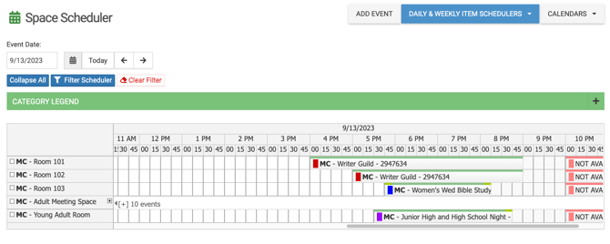 - Example of the tag filter applied to the Daily Spaces view.