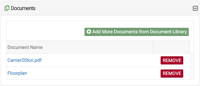 You (admins) can add a document from your Document Library to any item (space, resource, or service) as a way of linking internal information to that item. Once linked, this document can only be viewed by admins when viewing that settings of that particular item.