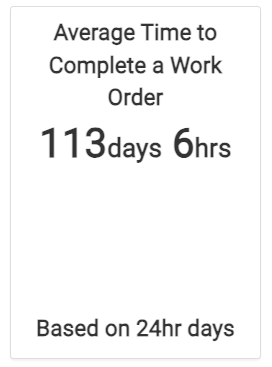 The average amount of time for Work Orders to be completed by a Technician or Vendor from the time work started in the selected Time Range