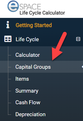 To setup CAPITAL GROUPS, expand LIFE CYCLE in the left sidebar and click on CAPITAL GROUPS (see attached below). Then Click on the green button – ADD NEW CAPITAL GROUP (shown below), complete the form and click SAVE.