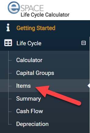 To create an ITEM, expand LIFE CYCLE in the left sidebar and click ITEMS.