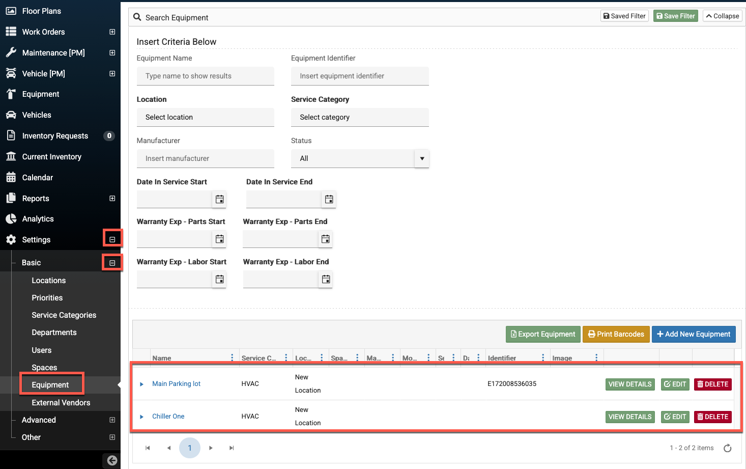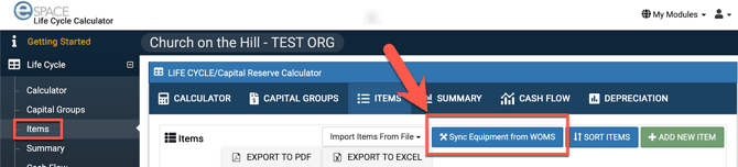 - To do so click the blue button, SYNC EQUIPMENT FROM WOMS (see attached below). This will pull over all of the equipment you already have in Work Order Management so that you do not have to re-enter the data. Details that you entered in for the equipment in Work Order & Asset management will also sync over, such as the equipment's location name and description.