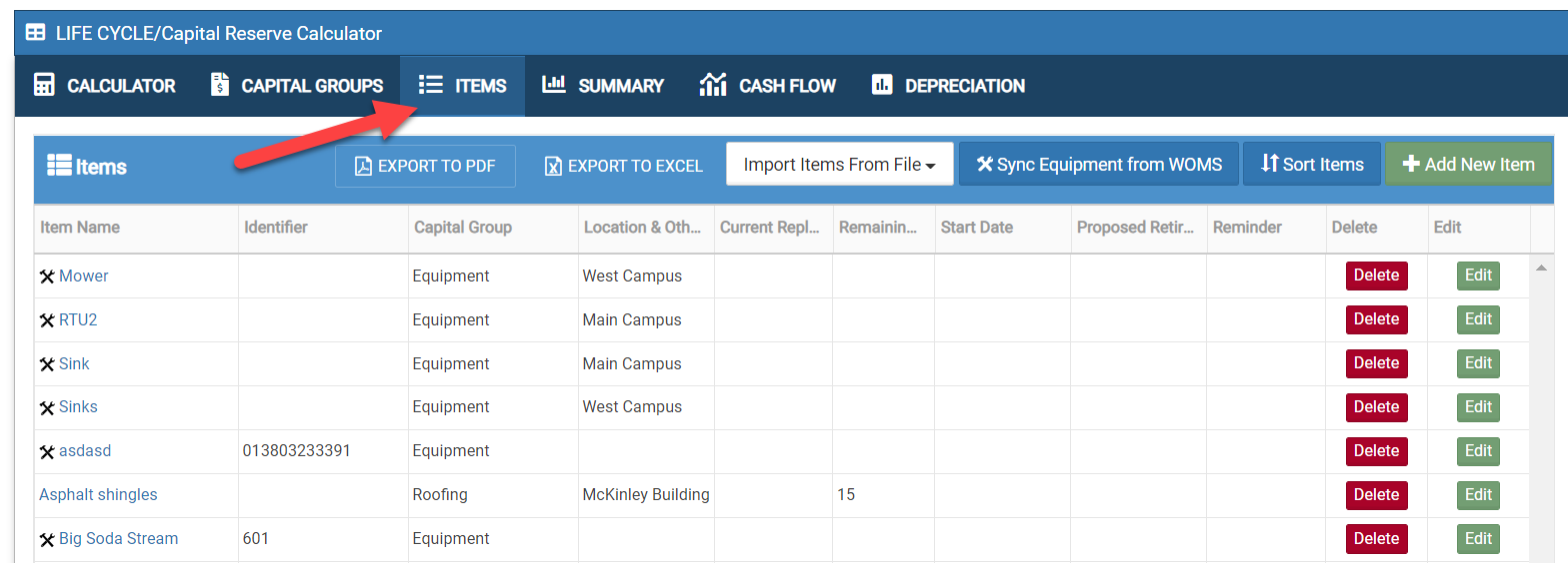 An ITEM can be any asset, piece of equipment or building component that you want to track the Life Cycle and/or Depreciation Schedule of. It does not have to be just building related. It can include IT equipment, maintenance equipment, flooring, actual real estate, as well as, building components like HVAC systems and roofs.