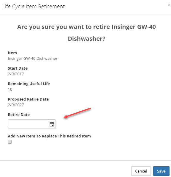 When you click on a specific item on the "Items" tab, you will see all of the item life cycle details, including the "Proposed Retired Date". The system automatically calculates a “PROPOSED RETIRE DATE” for each item based on the Start Date and the RUL. If you desire to extend or shorten the PROPOSED RETIRE DATE, merely change the RUL forward or backward.