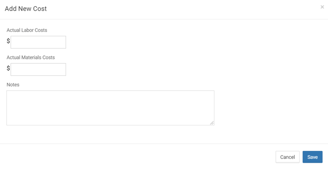 - Next, enter your labor and material costs, notes for reference, and choose SAVE (see below).