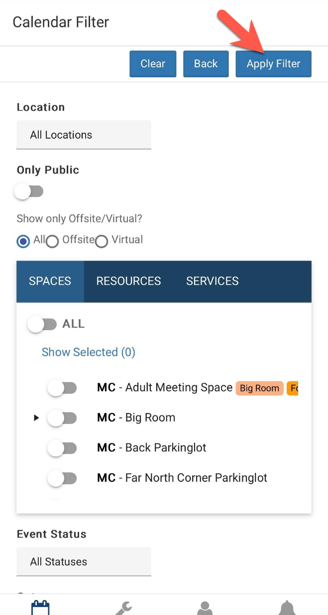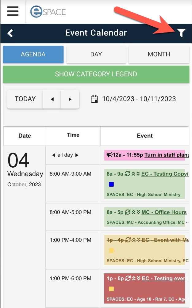 Mobile App | Filtered Calendar Search and Submit/Approve Events