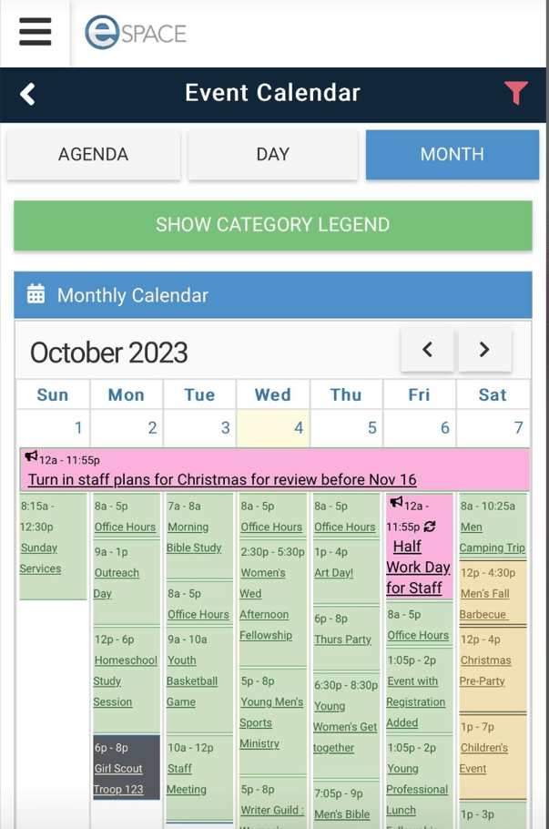 You can view the Monthly Calendar for Event Scheduler in the eSPACE app