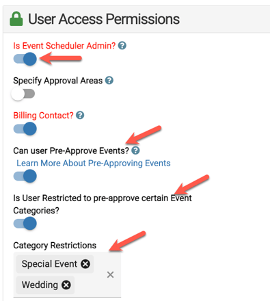- When setting this up, make sure at least 1 admin and/or sub-admins is set up to pre-approve every event category in your eSPACE account.