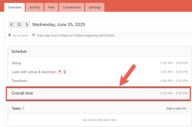 - If events in Planning Center have a set up and/or end teardown time, then eSPACE will sync in the "Overall Time," and you will see that entered in the start time and end time fields on events in Event Scheduler.