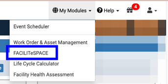 8. Once you do, then click My Modules (at the top right) and select FACILITeSPACE.