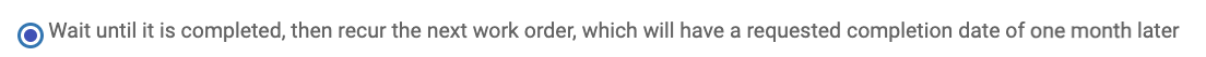 - This option simply provides for subsequent Work Orders to recur regardless of whether the previous Work Order is completed