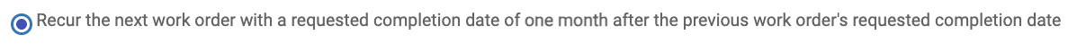 - Notice that the 2nd additional option (selected by default) provides for subsequent Work Orders to be generated after each previous Work Order's Requested Completion Date (again, if Daily, then the following date after the Requested Completion Date)