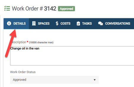 Go to the Details tab of an existing Work Order