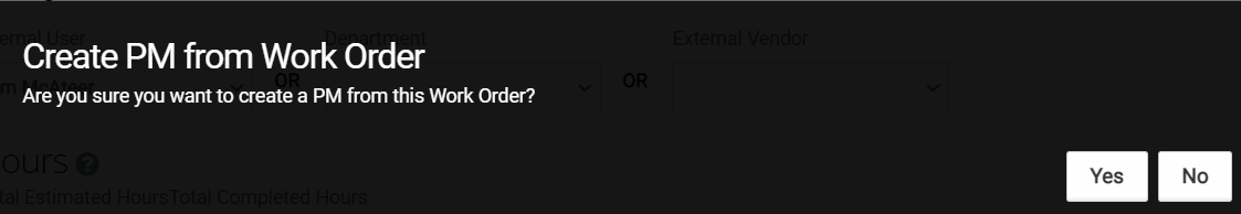 Choose Yes when asked if you want to create a PM from this Work Order