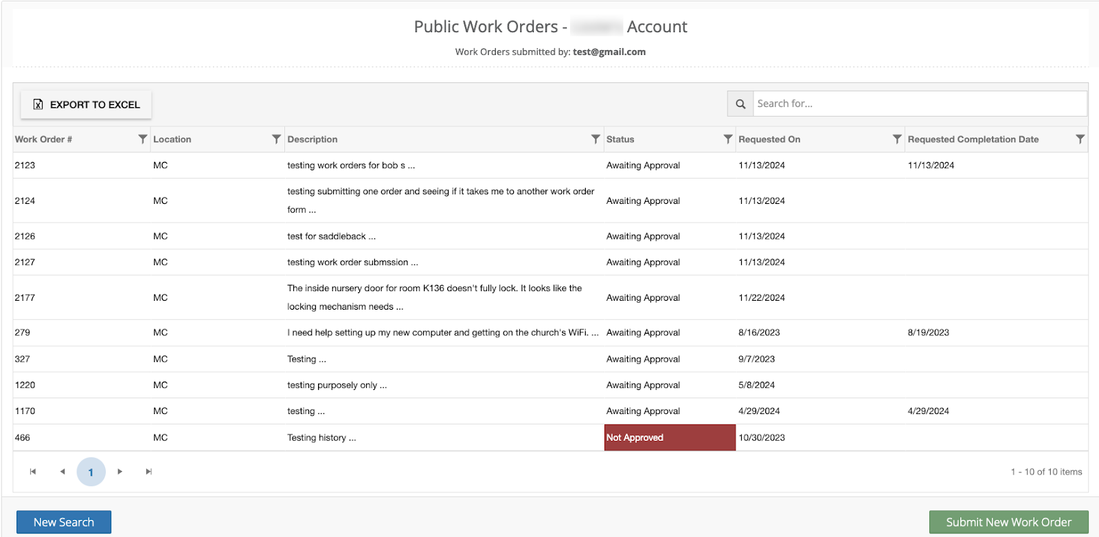 The requesters who submit a work order by using the form will get email updates when the status of the work order changes, letting them know when a Work Order has been approved and closed.