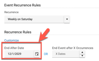 Alternative Option: Choose an end date for your event rather than a number of occurrences.