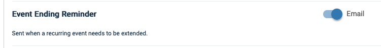 - The event owner and editors must also have "Event Ending Reminder" enabled under their Profile Icon/My Notifications/Notification Preferences.