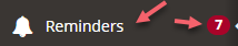 For internal users only, these reminders can also be found on the left sidebar of your dashboard by clicking Reminders. You can easily see how many unread reminders that you have to the right of "Reminders" as shown below.