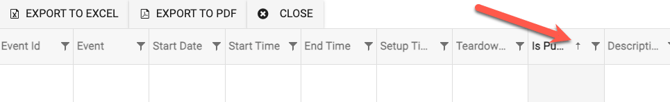 - On the exported report you can also sort the events (and their occurrences) by descending or ascending order by any column. Simply click in the column header to see an up or down arrow appear.