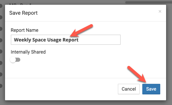 - Prior to running a report, you also have the ability to "Save Report" which saves all of your criteria and filter options so that you can quickly run the same report over and over again. When you select "Save report", another screen will open where you can name the report, decide if you want other eSPACE users to see the report, and then SAVE.