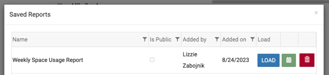 - To retrieve the report, simply click on "Saved Reports", and click LOAD.