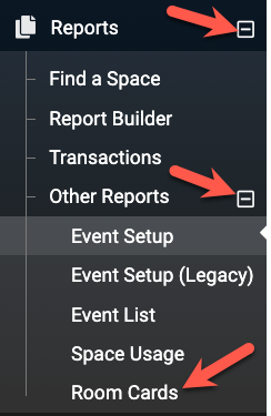 To get started, go to Reports, located on the left sidebar of your dashboard, then select Room Cards.