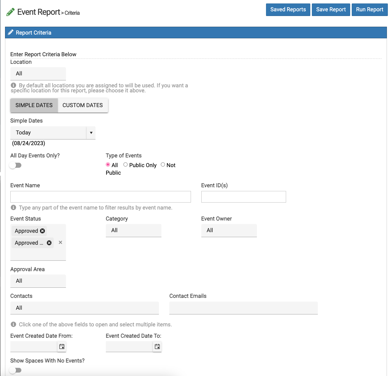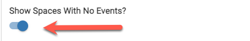 - When selected, spaces with no events will be included in the report and the space will show "NO EVENTS SCHEDULED" on the room card.