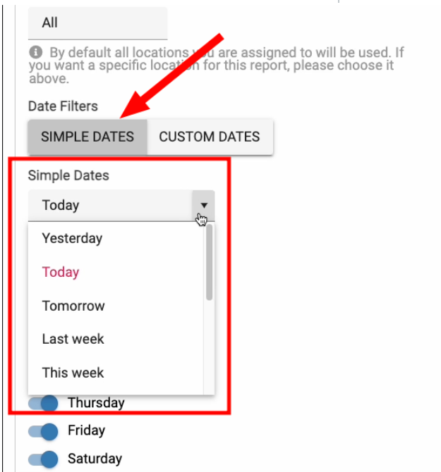 3. When choosing dates, you can either choose Simple Dates or Custom Dates.