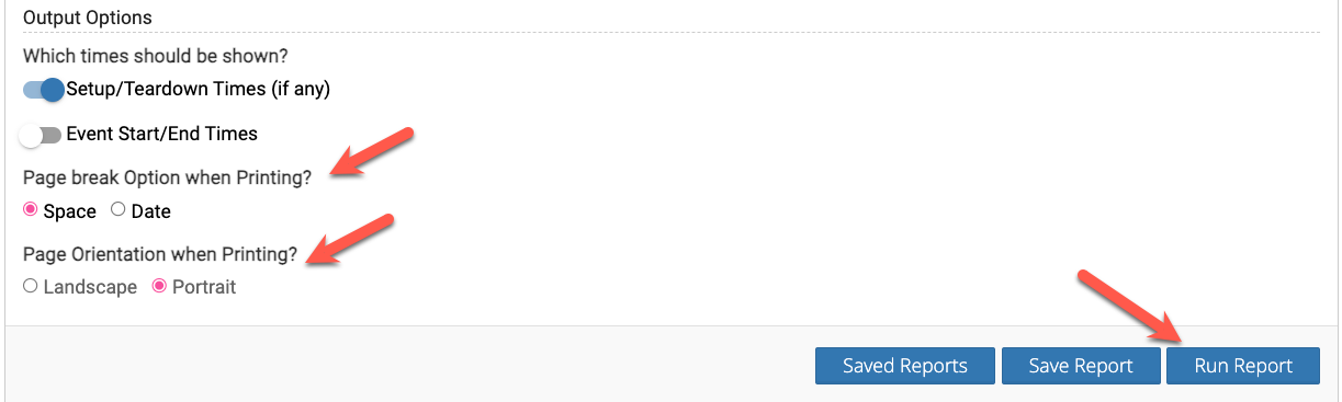 Room Cards are designed so that you can run a report for all of the events happening by space or date. When using the space output option, you can print out the events of the day for that space and place it on the outside of the door to advertise the events going on.
