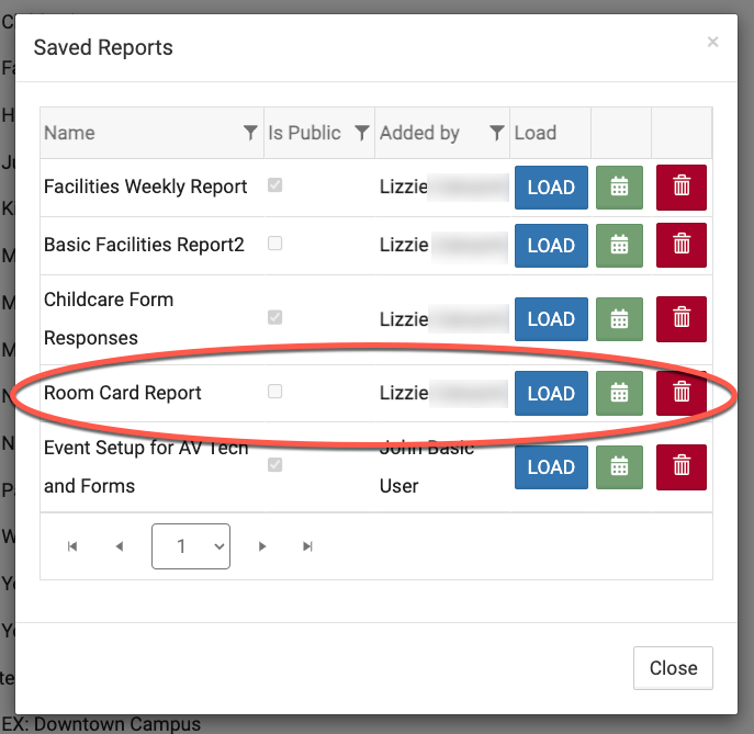 - You can click the red trashcan icon to delete the report.