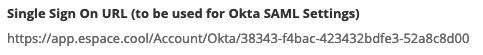 - Single sign on URL: This should be the value from #4 in the eSPACE setup section above.